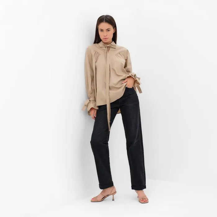 Рубашка женская с лентами MIST, размер 48, бежевый — Характеристики