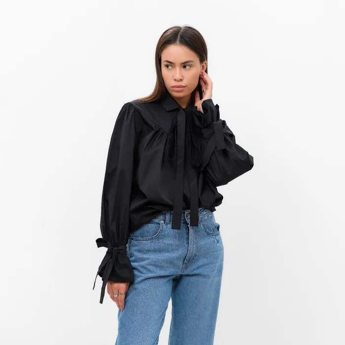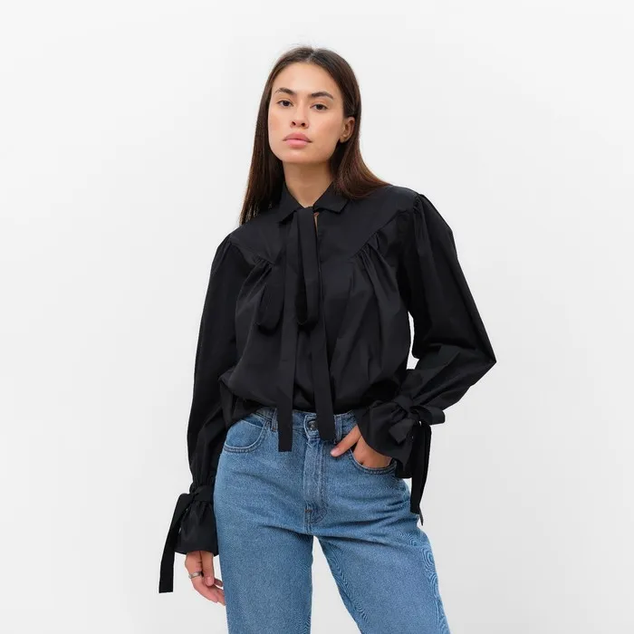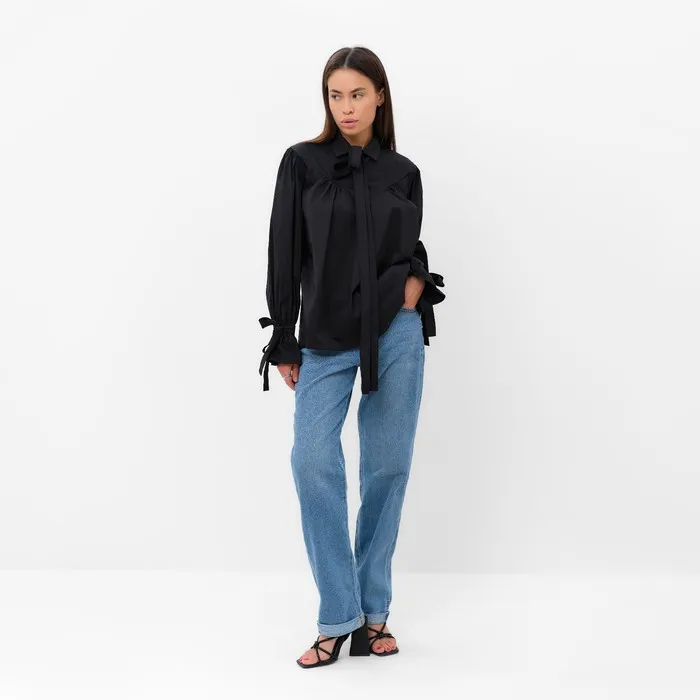 Рубашка женская с лентами MIST, размер 48, черный — Характеристики