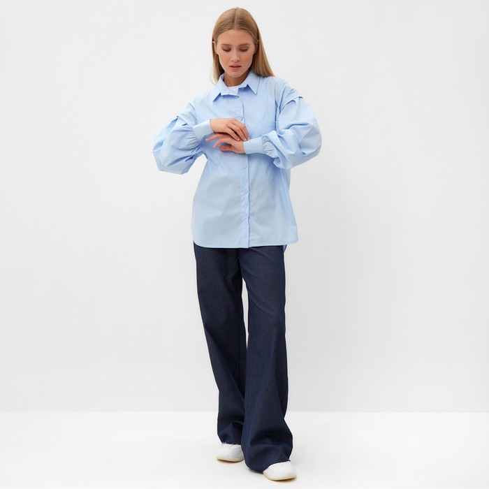 Рубашка женская с объемными рукавами MINAKU: Casual Collection, размер 52, голубая — Характеристики