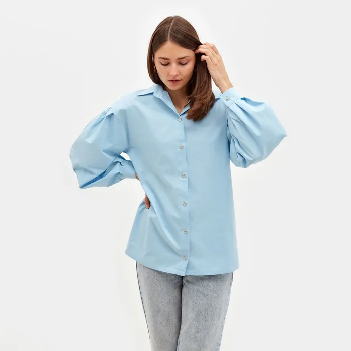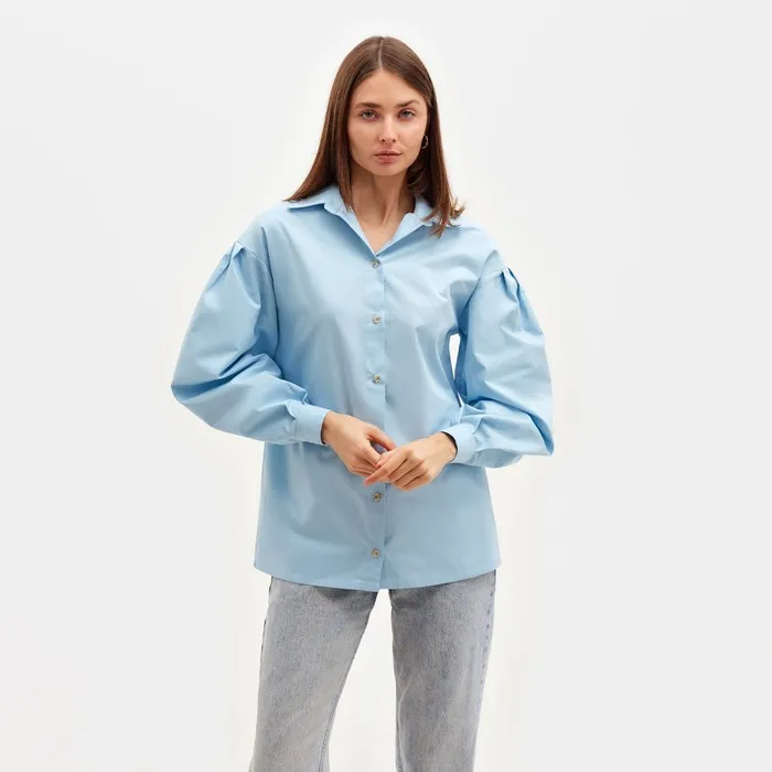 Рубашка женская с объёмными рукавами MINAKU: Casual Collection цвет голубой, р-р 50 — Характеристики