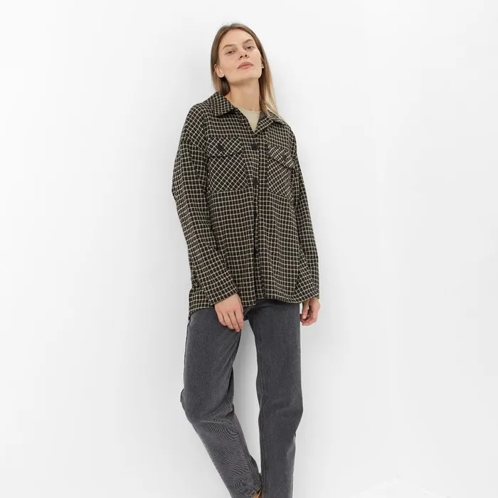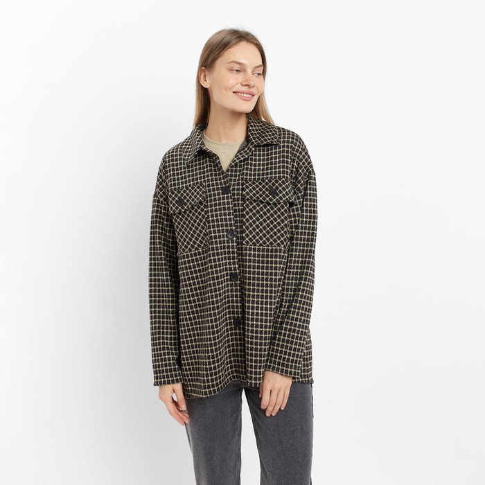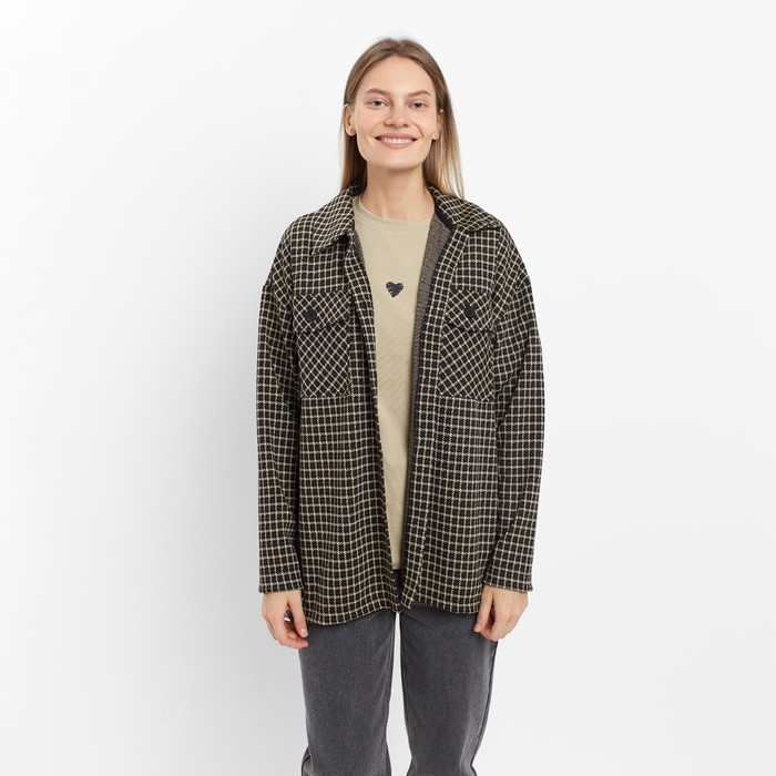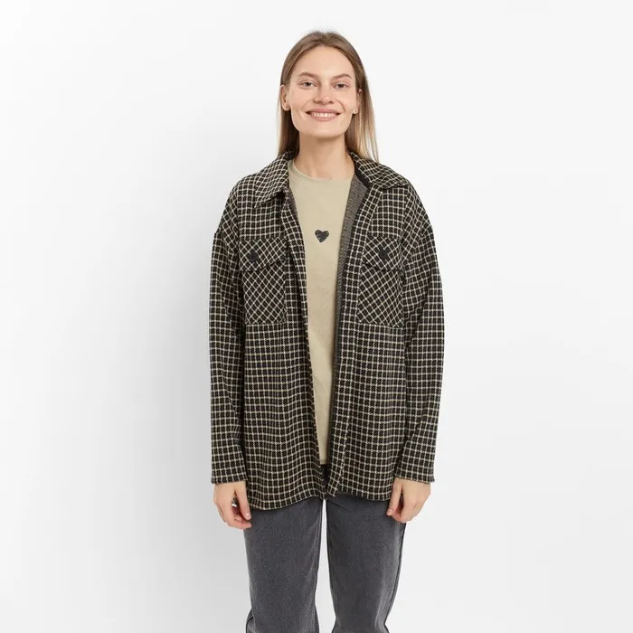 Рубашка женская, цвет бежевый/чёрный, размер 52 — Характеристики