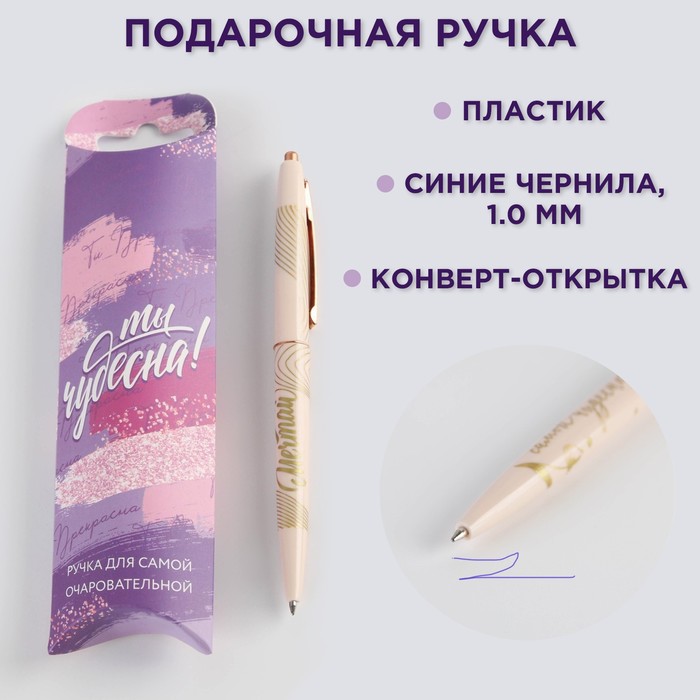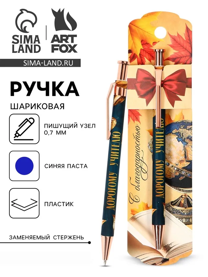 Ручка автоматическая на подложке «Лучшему учителю в мире», пластик, синяя паста 0.7 мм — Характеристики