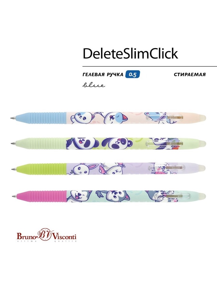 РУЧКА "DeleteSlimClick.Classic" KAWAII ANIMALS СО СТИРАЕМЫМИ ЧЕРНИЛАМИ 0.5 ММ, СИНЯЯ 4 ВИДА — Характеристики
