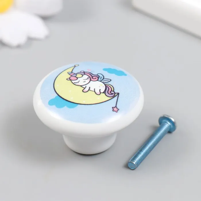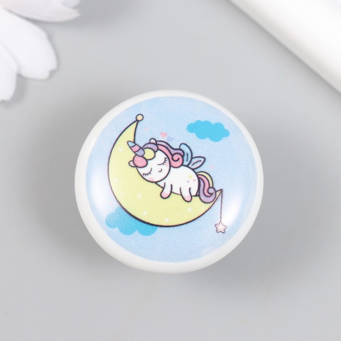 Ручка для шкатулки керамика, металл "Единорожка спит на месяце" 3,8х3,8 см