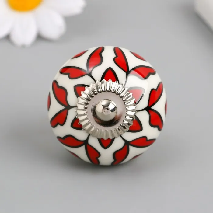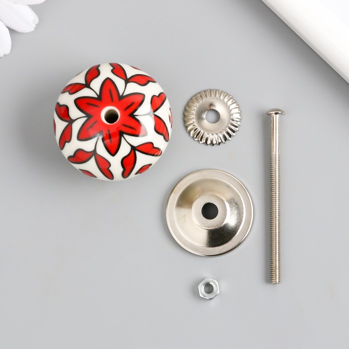 Ручка для шкатулки керамика, металл "Красный растительный узор" 4,1х4,1х6 см — Характеристики