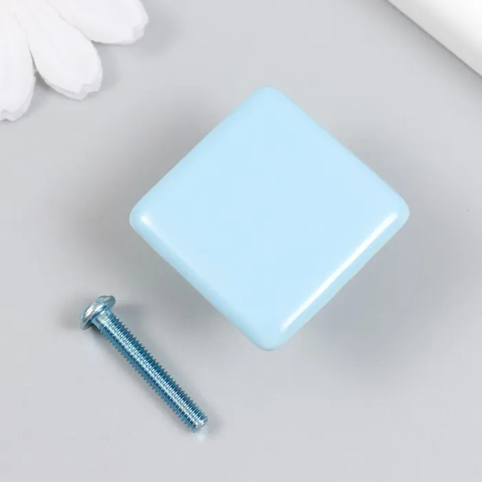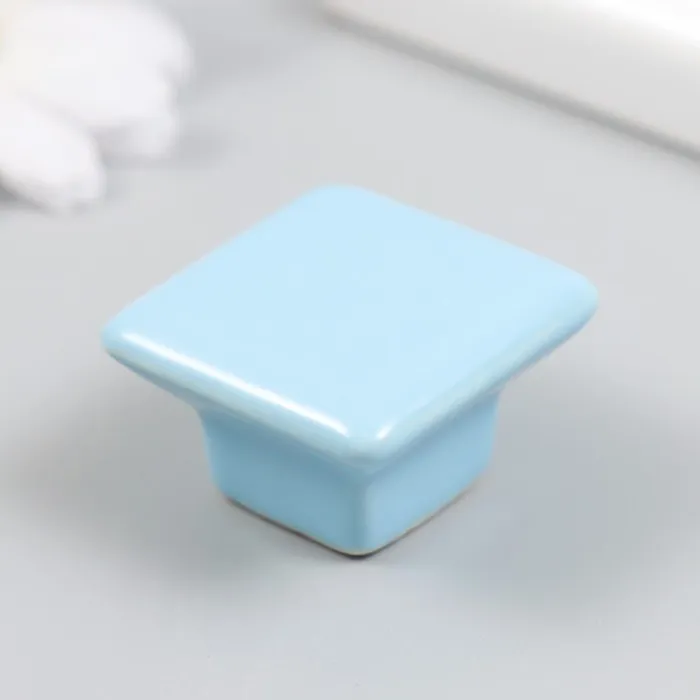 Ручка для шкатулки керамика, металл "Квадратик" голубая 3,3х3,3х2,1 см — Характеристики