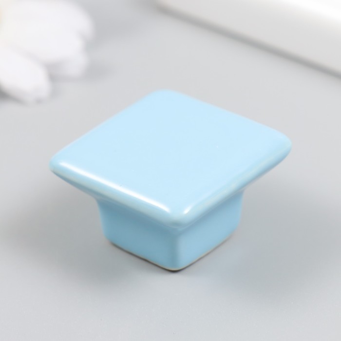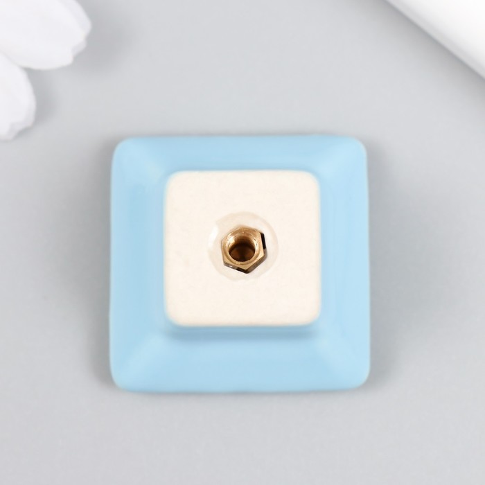 Ручка для шкатулки керамика, металл "Квадратик" голубая 3,3х3,3х2,1 см