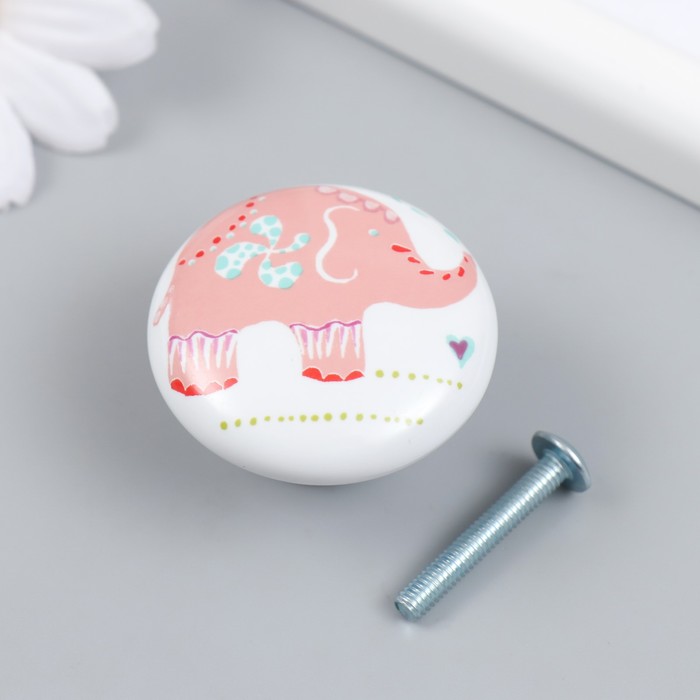 Ручка для шкатулки керамика, металл "Розовый слон" 3,8х3,8х2,8 см
