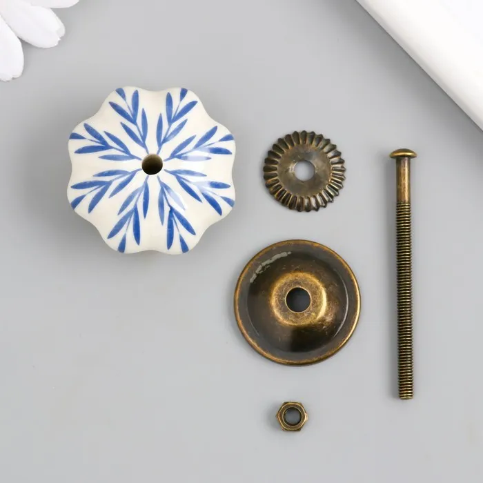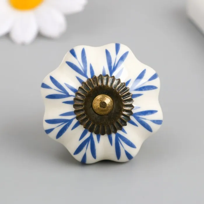 Ручка для шкатулки керамика, металл "Синие веточки" 4,2х4,2х6 см — Характеристики