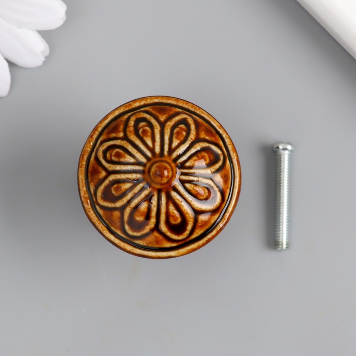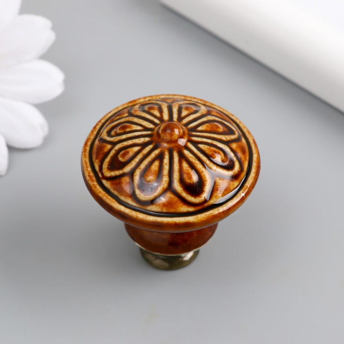 Ручка для шкатулки керамика, металл "Цветок" кофе 3,9х3,9х3,1 см — Характеристики