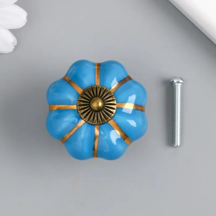 Ручка для шкатулки керамика, металл "Тыковка" голубая 4х4х4 см