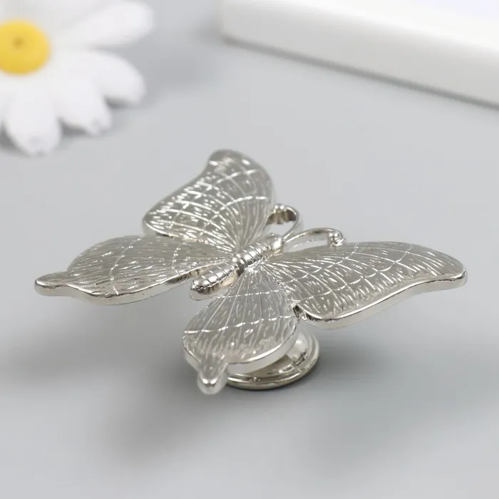 Ручка для шкатулки металл "Бабочка" серебро 5,2х6,3 см