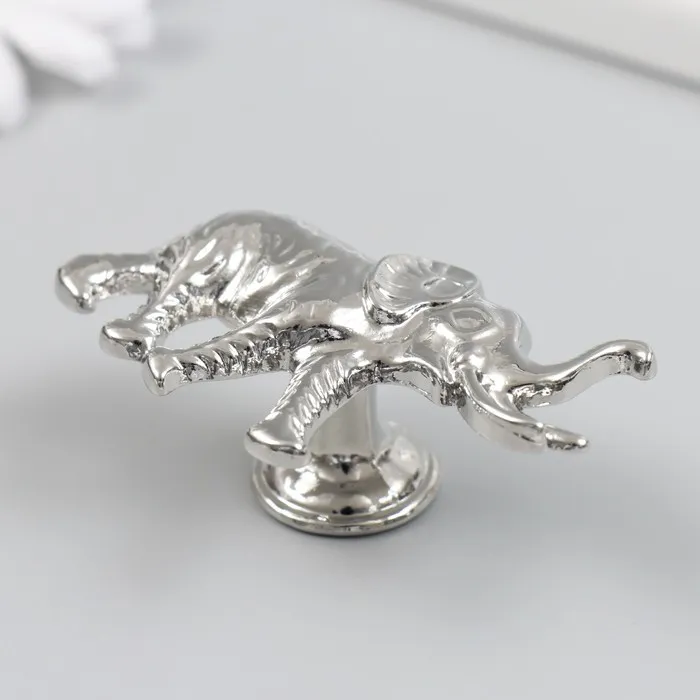 Ручка для шкатулки металл "Индийский слон" серебро 3,3х5,8 см