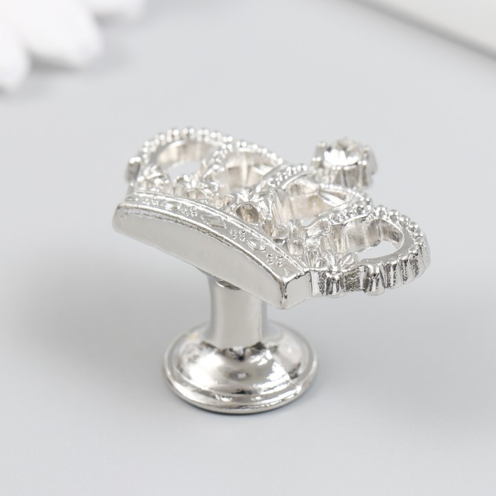 Ручка для шкатулки металл "Корона" страза, серебро 4,5х3,2х2,6 см