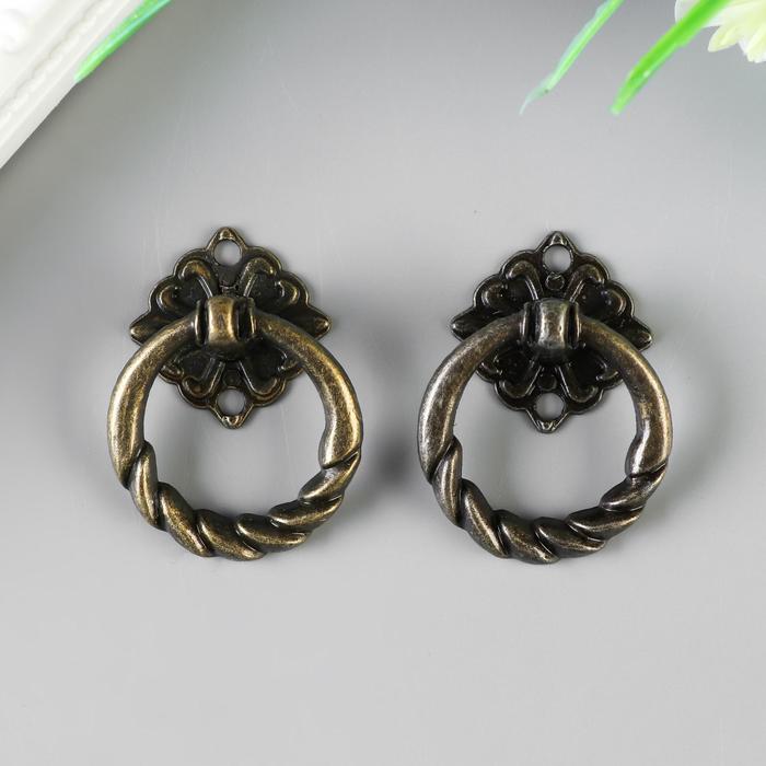 Ручка для шкатулки металл "Молоточек косичка" бронза набор 2 шт 841 4х3 см