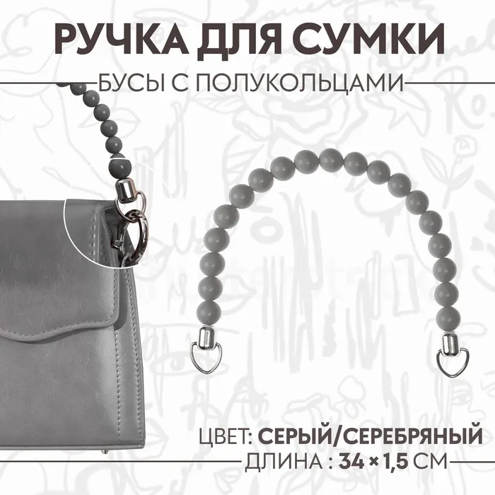 Серая пластиковая ручка для сумки с серебристой фурнитурой — простое и практичное решение для ежедневного использования. Удобная длина 34 см обеспечивает комфортный хват, а прочный материал выдерживает нагрузку даже при переноске тяжёлых вещей. Подходит для большинства моделей сумок и рюкзаков.