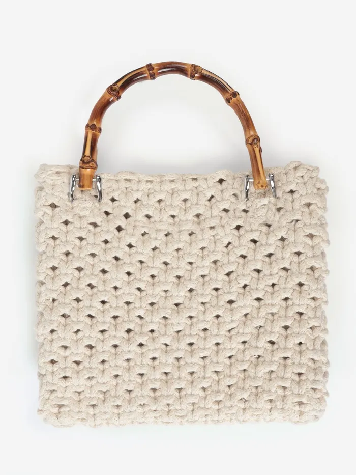 Ручка для сумки, бамбук, с полукольцами, 13.5×10.5 см, цвет бежевый, серебряный — Характеристики