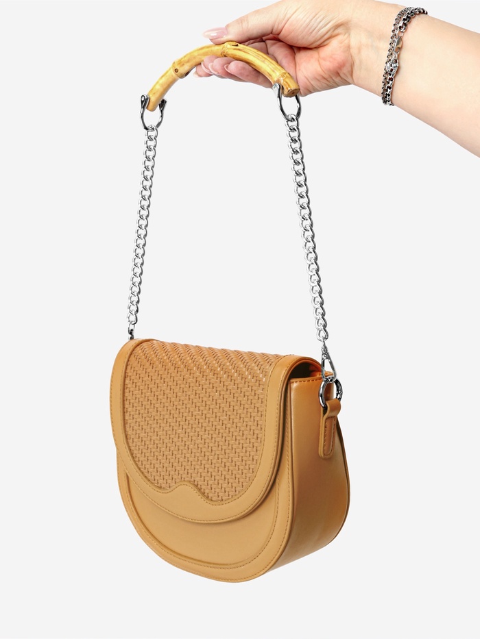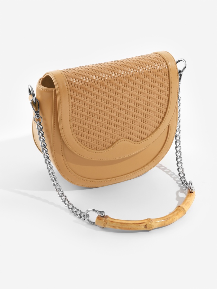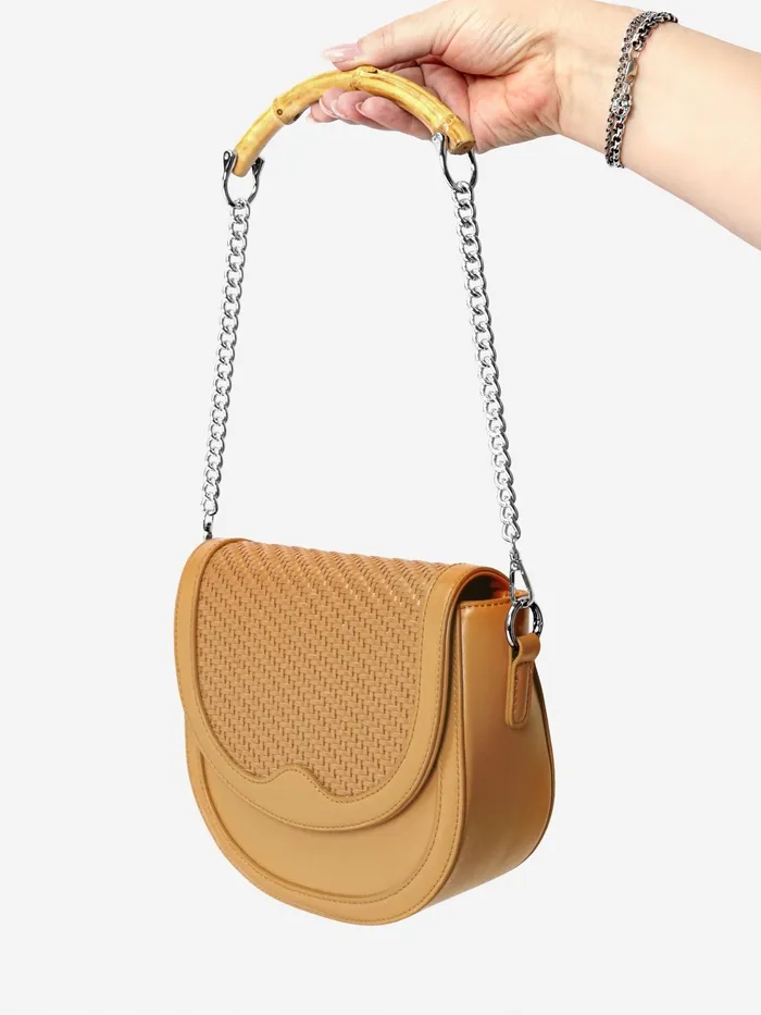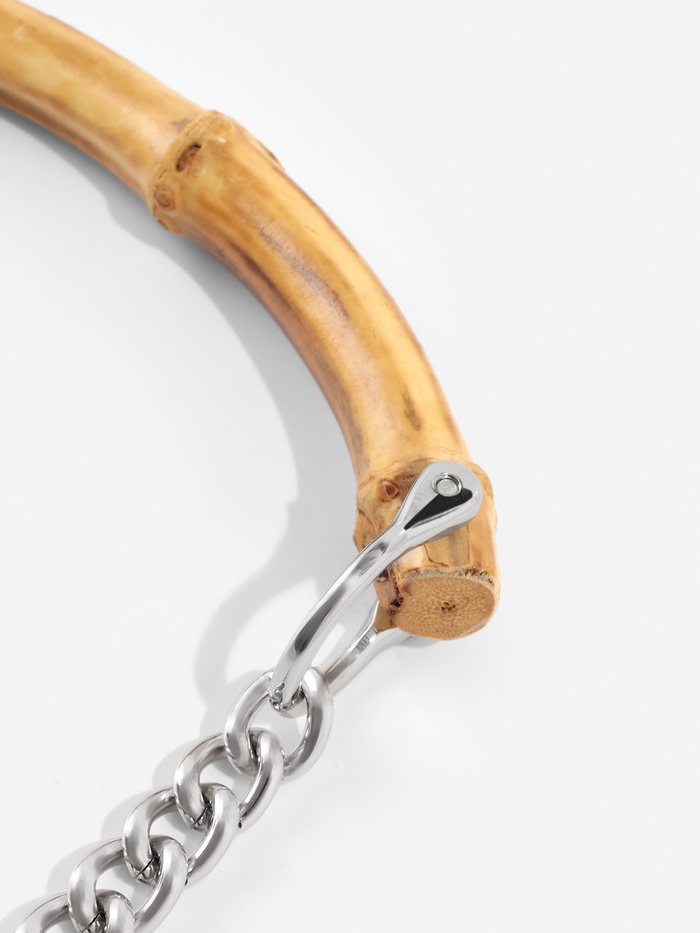 Стильная ручка для сумки с цепочкой — это удачное сочетание натурального бамбука и серебряных акцентов. Лаконичный бежевый оттенок материала подчеркивает природную текстуру, а металлические элементы добавляют современности и лёгкого блеска. Это готовое решение для создания уникального аксессуара, который подойдёт как к повседневному, так и к вечернему образу.