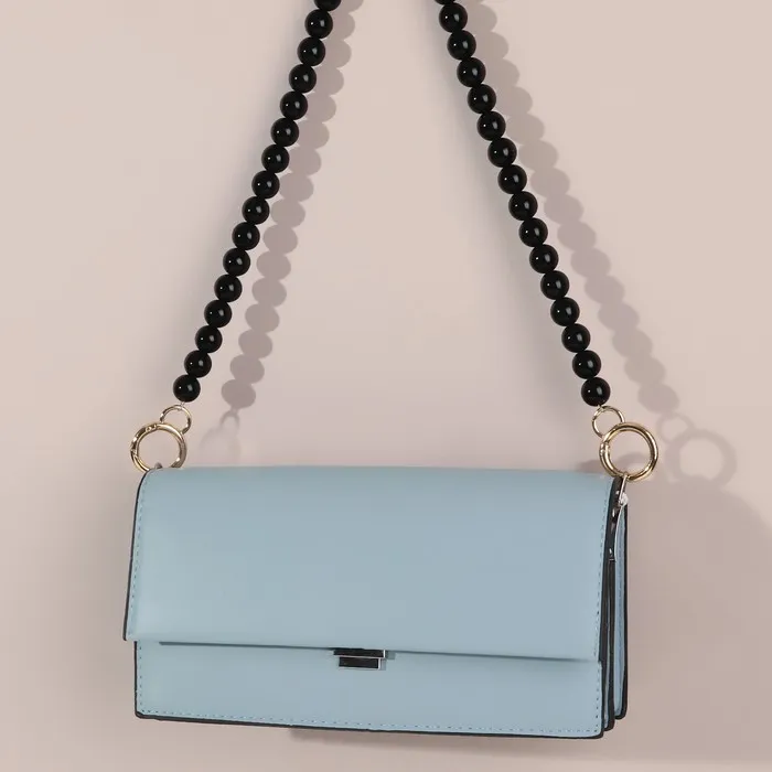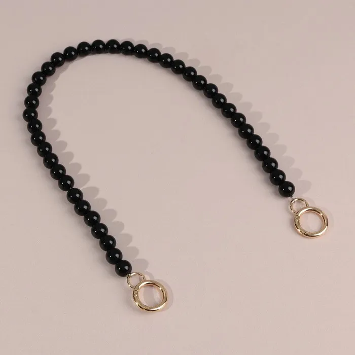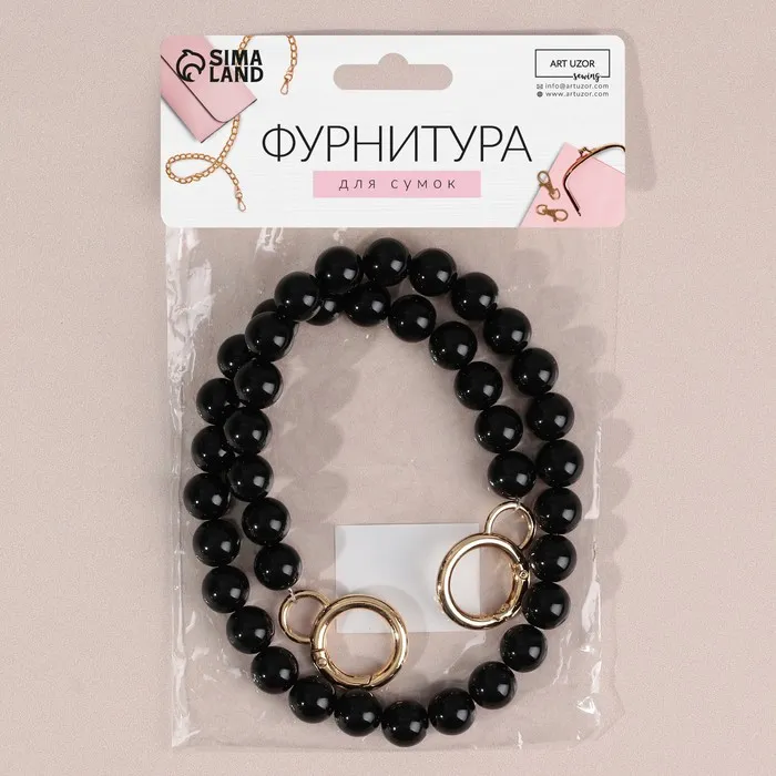 Черная ручка для сумки с золотистой фурнитурой и чёрными бусинами сочетает в себе практичность и стильный внешний вид. Длина 60 см дает свободу выбора - носить сумку в руке или перекинуть через плечо. Классическое сочетание черного и золотого подойдет к большинству аксессуаров в гардеробе.