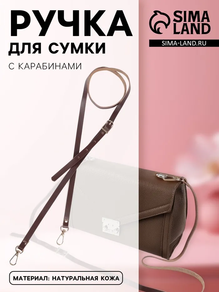Ручка для сумки из натуральной кожи, с карабинами, 125×1.2 см, коричневая — Характеристики