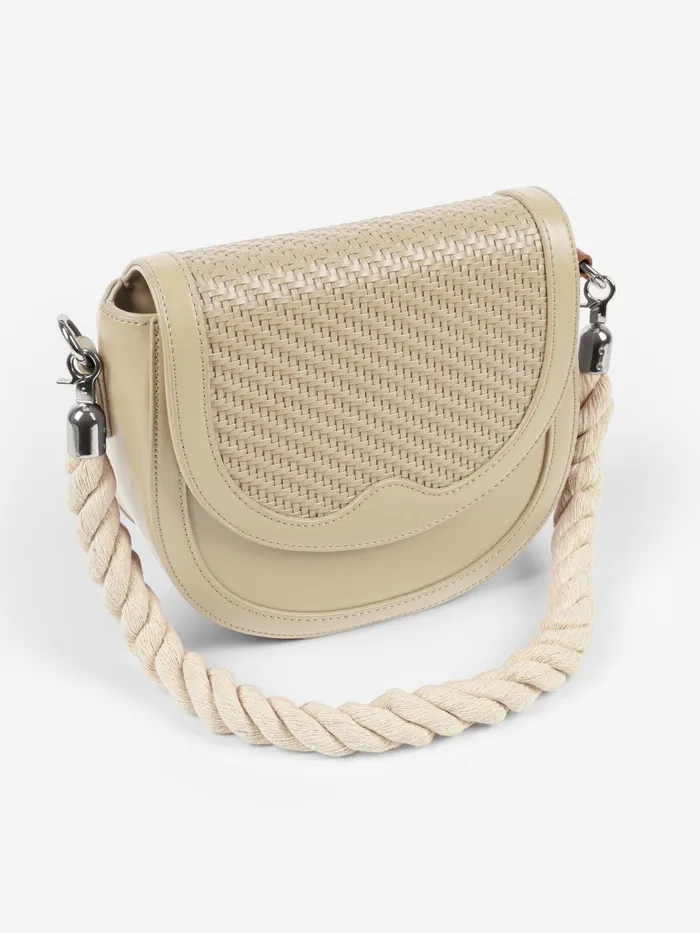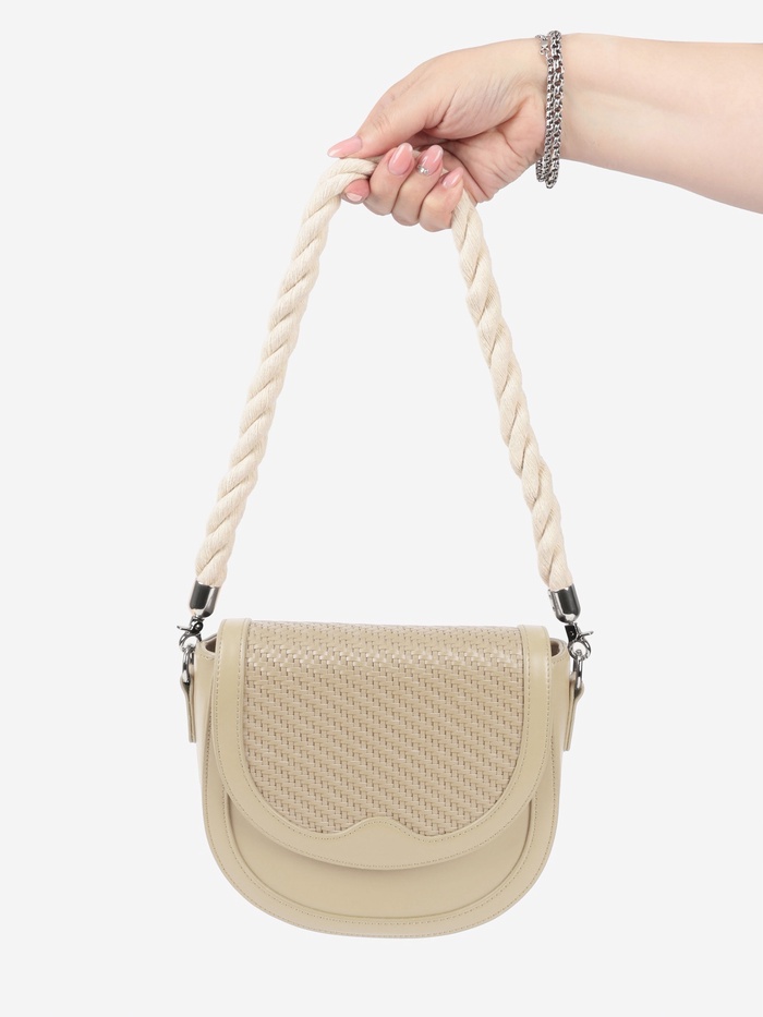 Элегантный канатный ремешок с серебристыми карабинами – универсальное решение для компактных сумок и клатчей. Плетеный полиэстер в нежном кремовом оттенке сочетает в себе прочность и стильный внешний вид. Длина 60 см идеально подходит для ношения в руке или на локтевом сгибе.