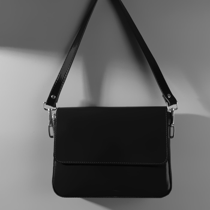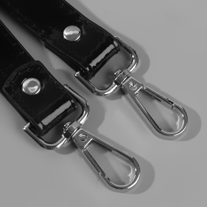 Черная лакированная ручка для сумки длиной 60 ± 1 см с карабинами — практичное решение для обновления или дополнения вашего аксессуара. Ее гладкая поверхность и серебряная фурнитура создают современный и элегантный образ. Благодаря карабинам, ручку легко крепить к различным моделям сумок, обеспечивая надежность и комфорт при использовании.