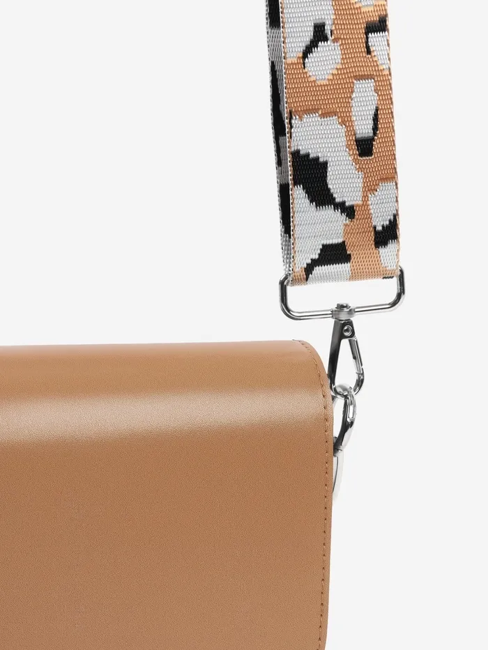 - Контрастный принт делает аксессуар заметным даже с базовой сумкой.