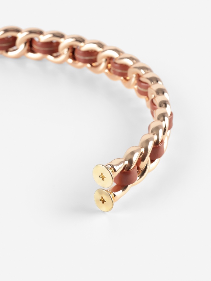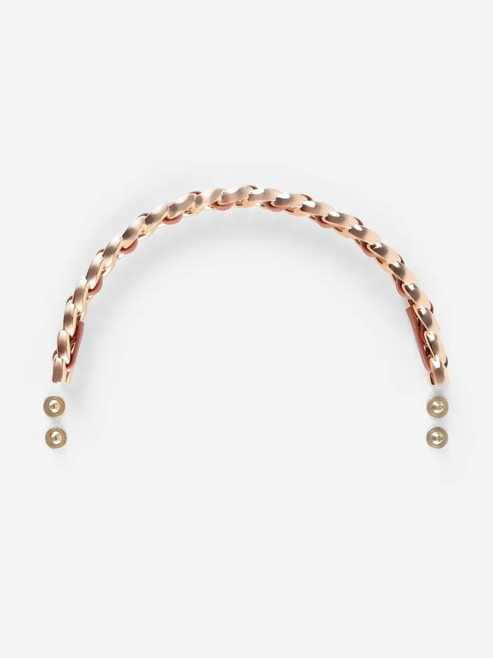 Элегантная металлическая ручка для сумки — идеальный выбор для тех, кто ценит стиль и надёжность. Её универсальный дизайн сочетает золотистый и коричневый оттенки, что делает аксессуар гармоничным дополнением как повседневного, так и вечернего образа. Прочный материал обеспечивает долговечность, а удобные крепления позволяют легко установить изделие на любую модель сумки.
