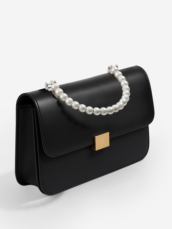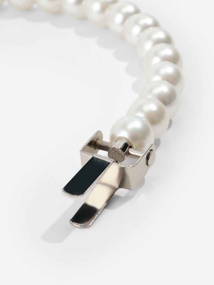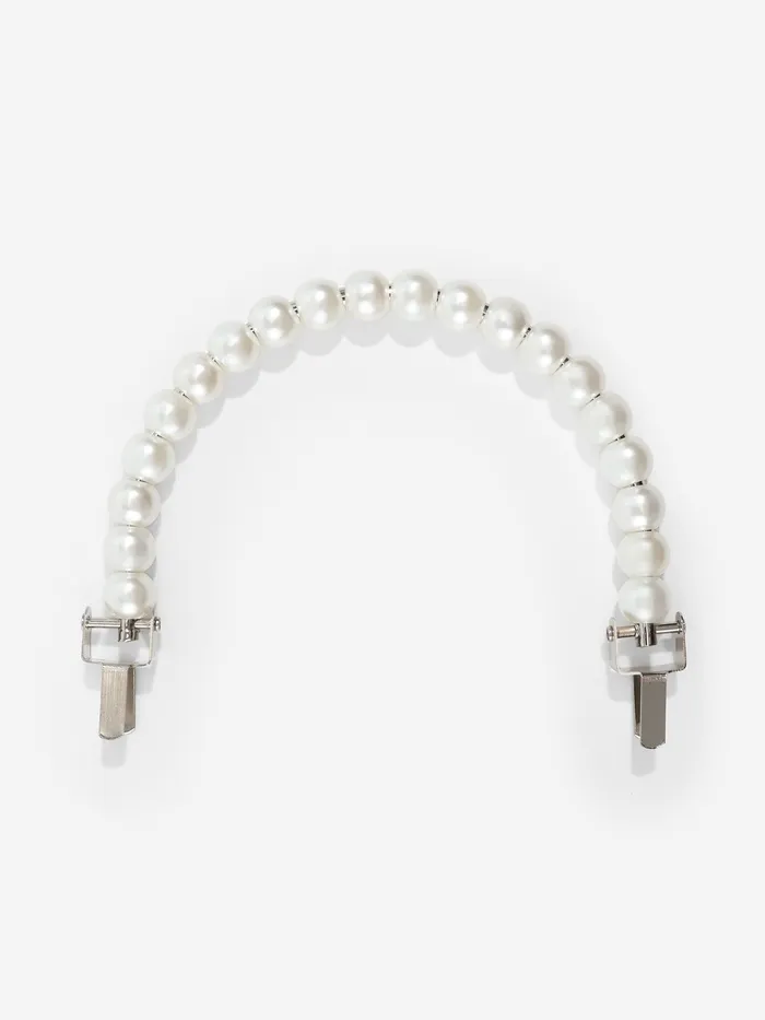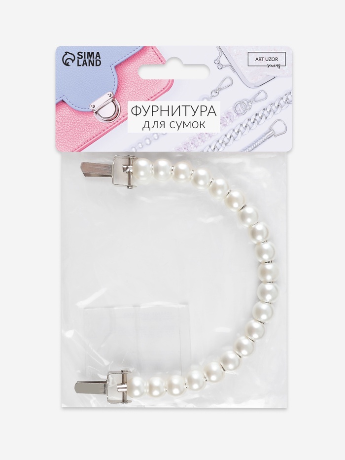 Ручка для сумки, металлическая, жемчужные бусы, на прокол, 12.5×9×1.2 см, цвет белый, серебряный — Характеристики