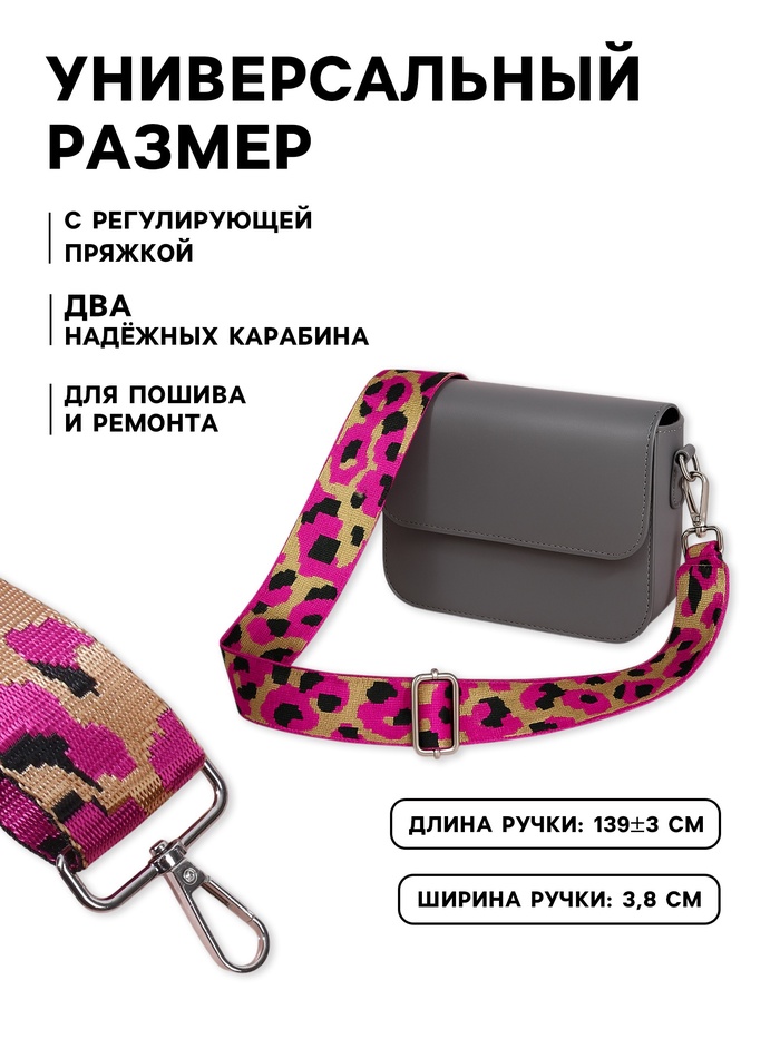 Ручка для сумки «Розовый леопард», стропа, с карабинами, 139±3×3.8 см, ярко-розовая — Характеристики