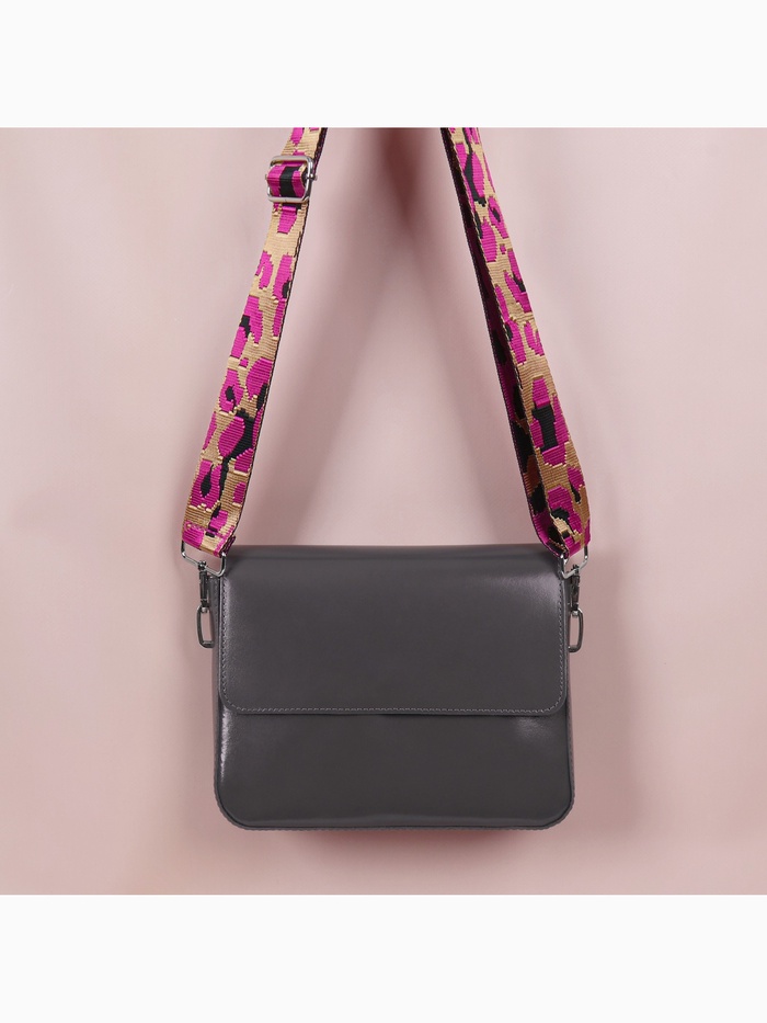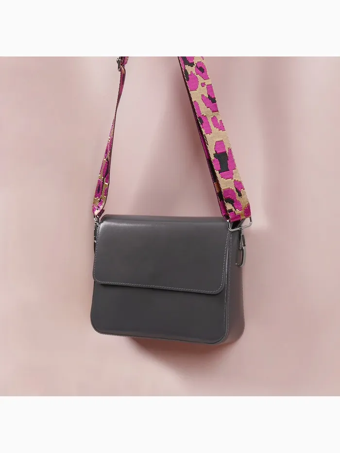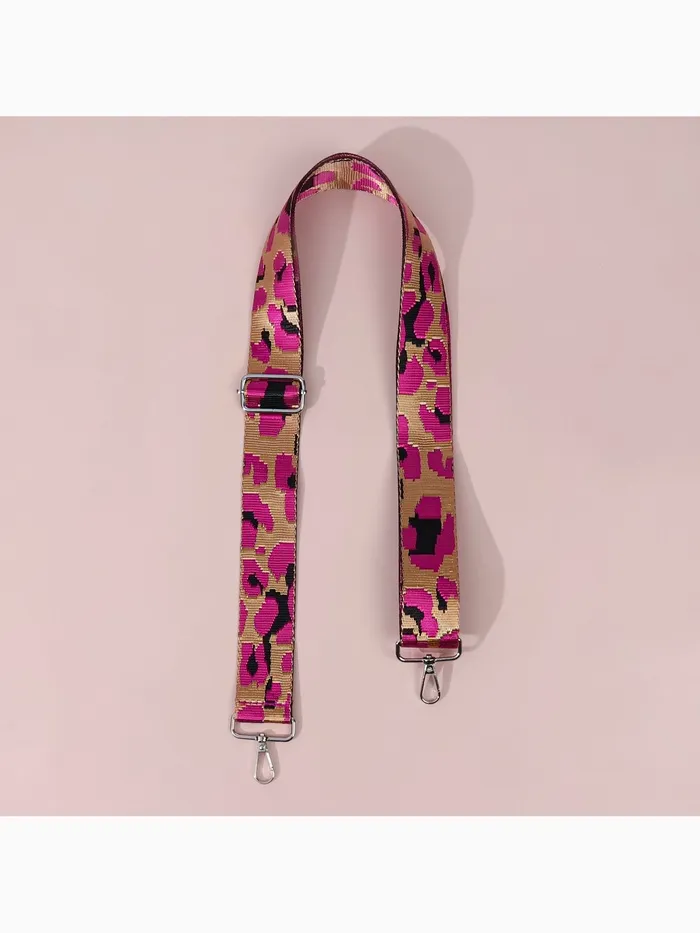 Смелый розовый ремень с леопардовым принтом — дерзкий акцент для вашей сумки. Яркий розовый оттенок в сочетании с хищным узором создает неожиданный контраст, а серебристые карабины добавляют стилевую завершенность. Длина 140 см позволяет носить сумку через плечо.