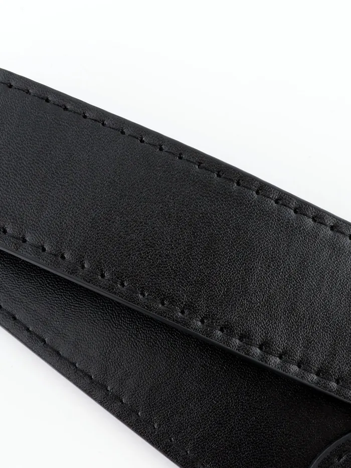 Черная ручка для сумки с карабинами — стильное и практичное решение для обновления вашего аксессуара. Ее длина 35±1 см делает ее удобной для ношения через плечо или в руке. Искусственная кожа высокого качества и серебряная фурнитура создают современный и элегантный образ.