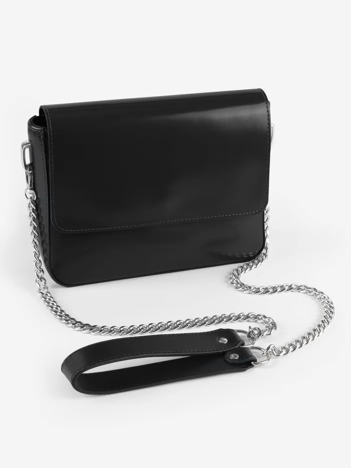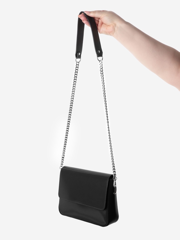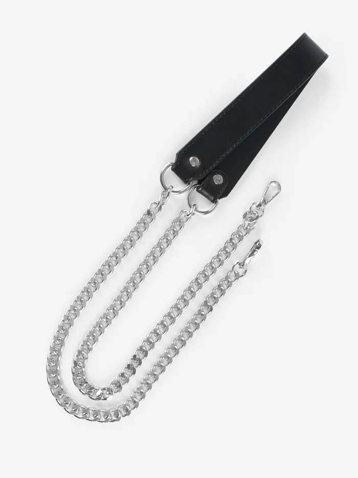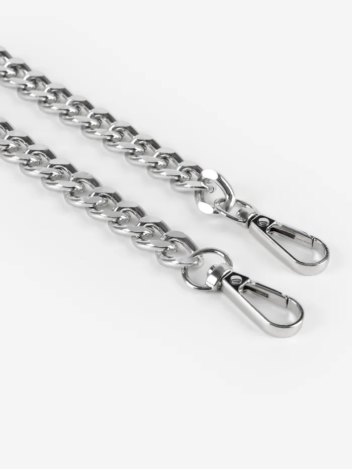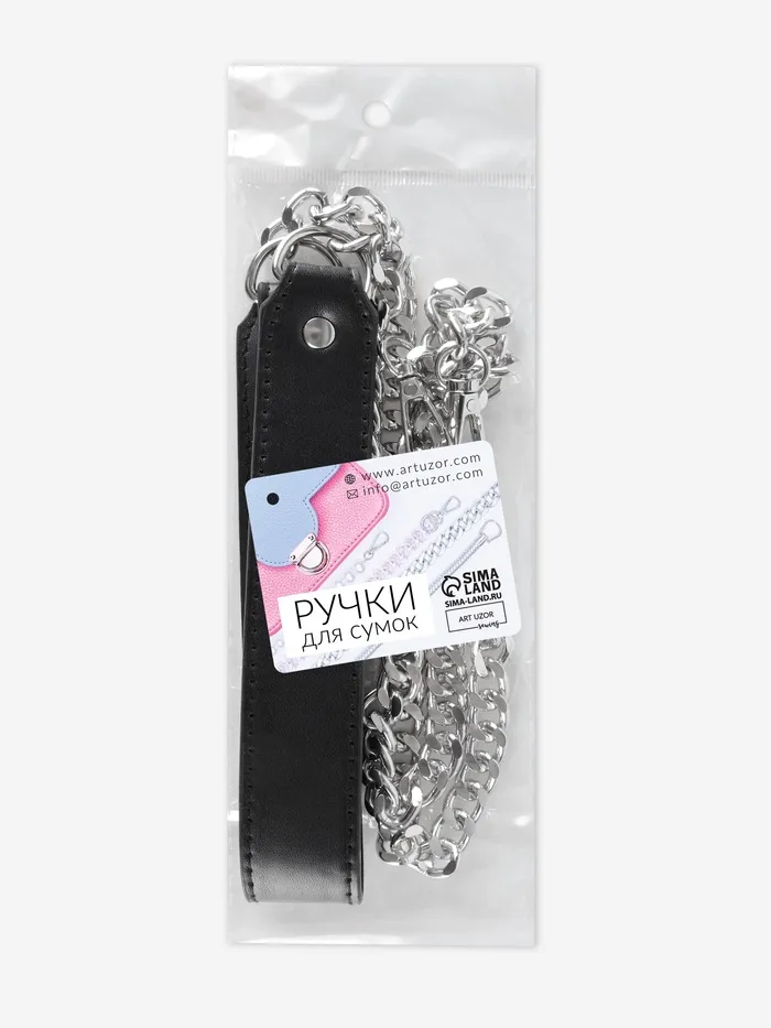 Ручка для сумки, с плоскими цепочками и карабинами, 120×3 см, цвет чёрный, серебряный — Характеристики