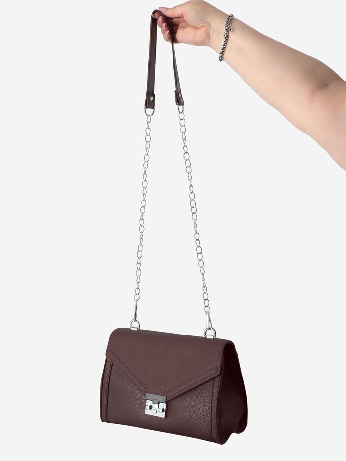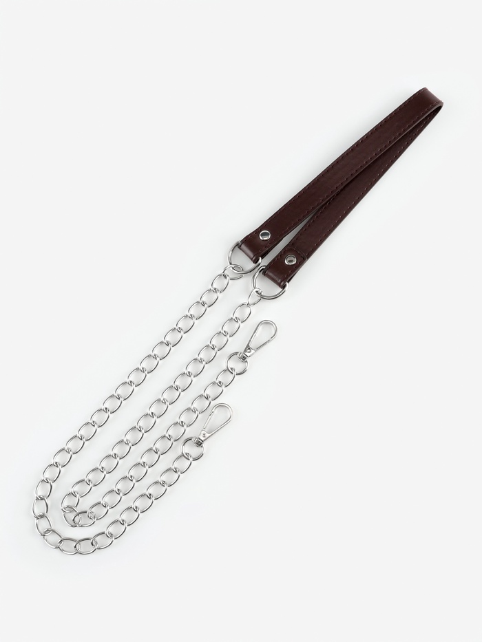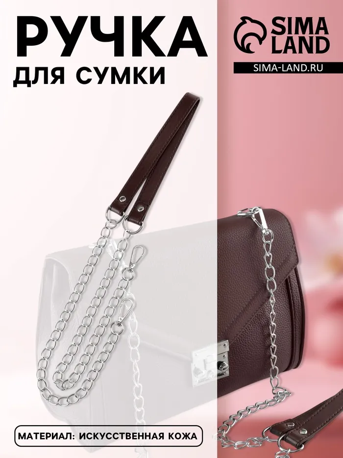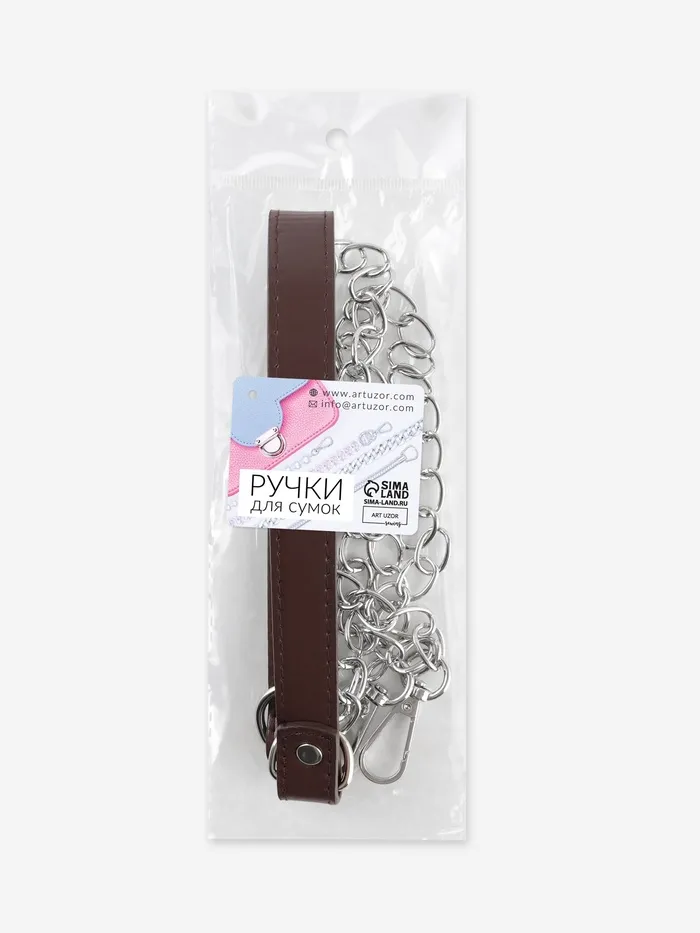 Ручка с цепочкой для сумки — это яркий акцент, сочетающий стиль и функциональность. Коричневый цвет придаёт аксессуару строгости, а серебряные цепочки добавляют динамики и современности. Материал — мягкая искусственная кожа, обеспечивающая комфорт при ношении. Длина 120 см делает ручку удобной как для удлинённого ремня, так и для создания многослойного образа.