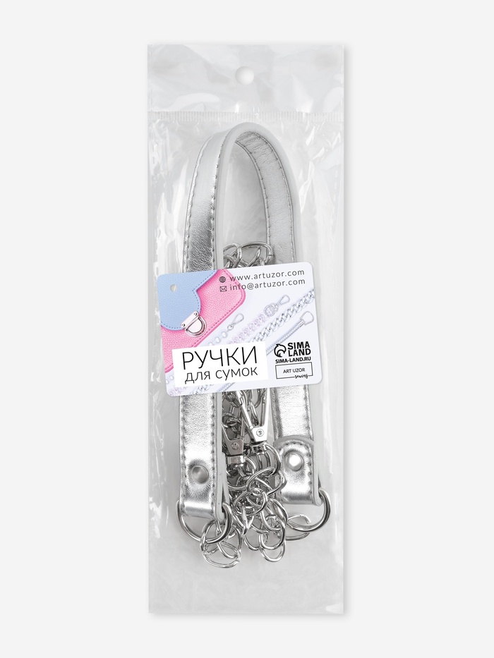 Ручка «Арт Узор» с цепочками — это современный аксессуар, который подчеркнёт индивидуальность вашей сумки. Серебристый цвет придаёт изделию металлический блеск и делает его заметным элементом образа. В сочетании с карабинами и цепочками ручка создаёт эффект модного ремня. Материал — мягкая искусственная кожа, устойчивая к износу. Длина 120 см обеспечивает комфорт при ношении через плечо или в виде длинного аксессуара.