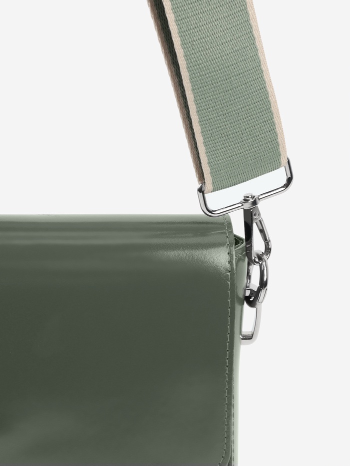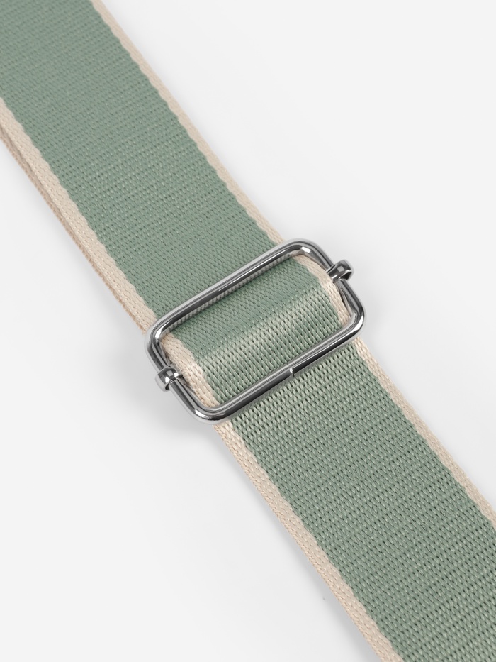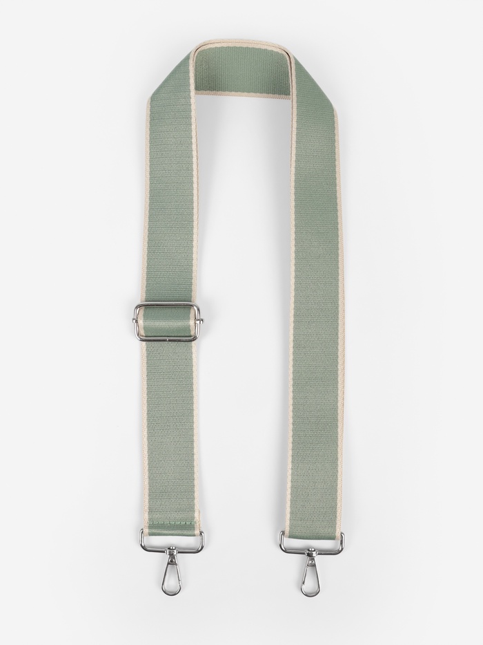 Свежая зелено-молочная стропа для сумки освежит ваш аксессуар за минуты. Длина 135 см оптимальна для ношения через плечо, а серебристая фурнитура добавляет стильный контраст. Плотный полиэстер держит форму и не вытягивается со временем.