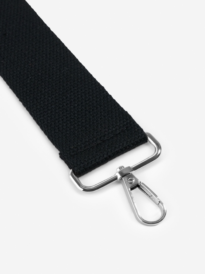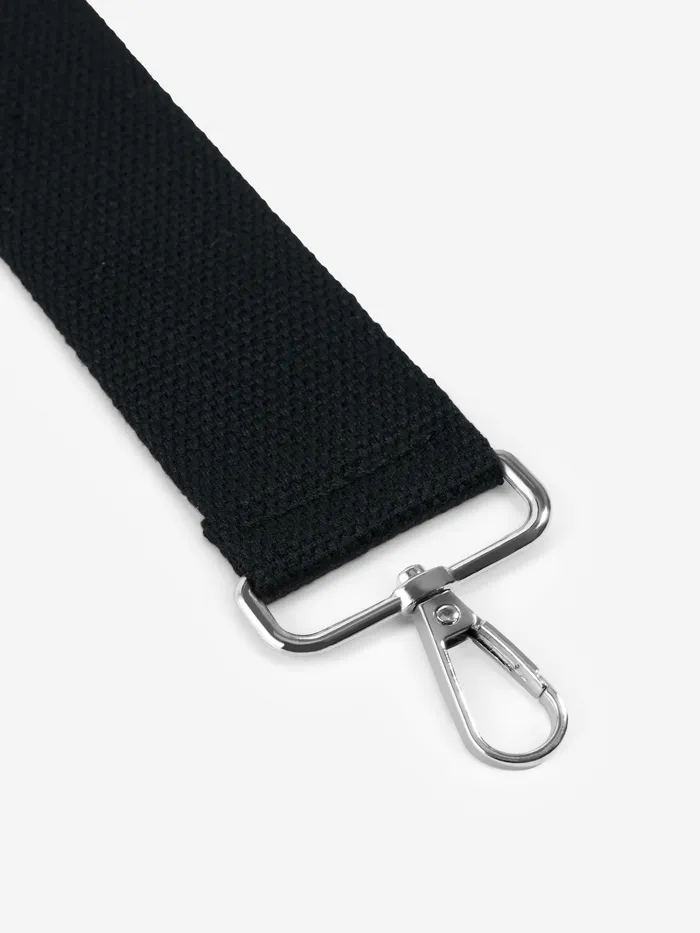 Универсальный черный ремень с карабинами — практичное решение для вашей сумки. Стропа из плотного полиэстера длиной 140 см выдерживает ежедневные нагрузки, а серебристая фурнитура добавляет стильный акцент. Меняйте аксессуар за секунды — карабины позволяют быстро закрепить его на любой сумке.