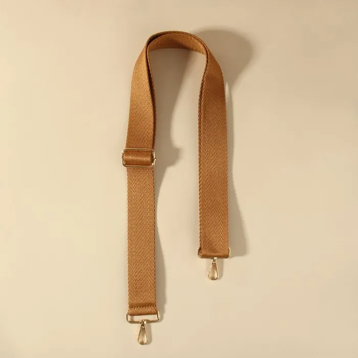 Теплый коричневый ремень с золотистыми карабинами — универсальное решение для вашей сумки. Длина 139 см обеспечивает комфортное ношение через плечо, а полиэстер сохраняет форму даже при ежедневном использовании.
