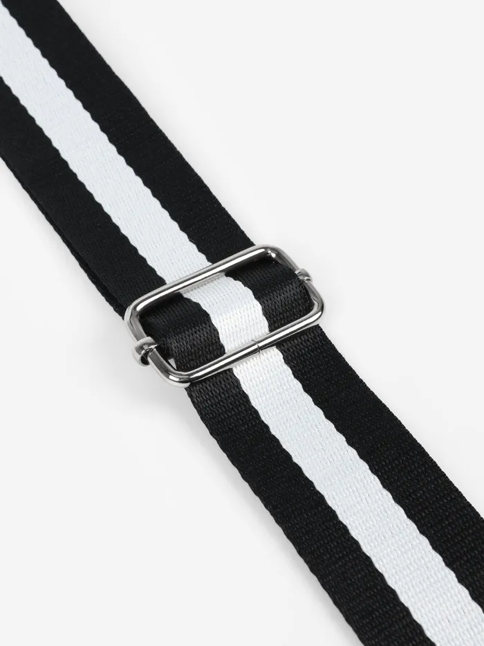 Контрастный ремень для сумки сочетает практичность полиэстера и стиль кожаной вставки. Черно-белая гамма с серебристой фурнитурой создает универсальный акцент, а длина 140 см подходит для ношения через плечо. Идеальное решение для тех, кто ценит функциональность с дизайнерской деталью.