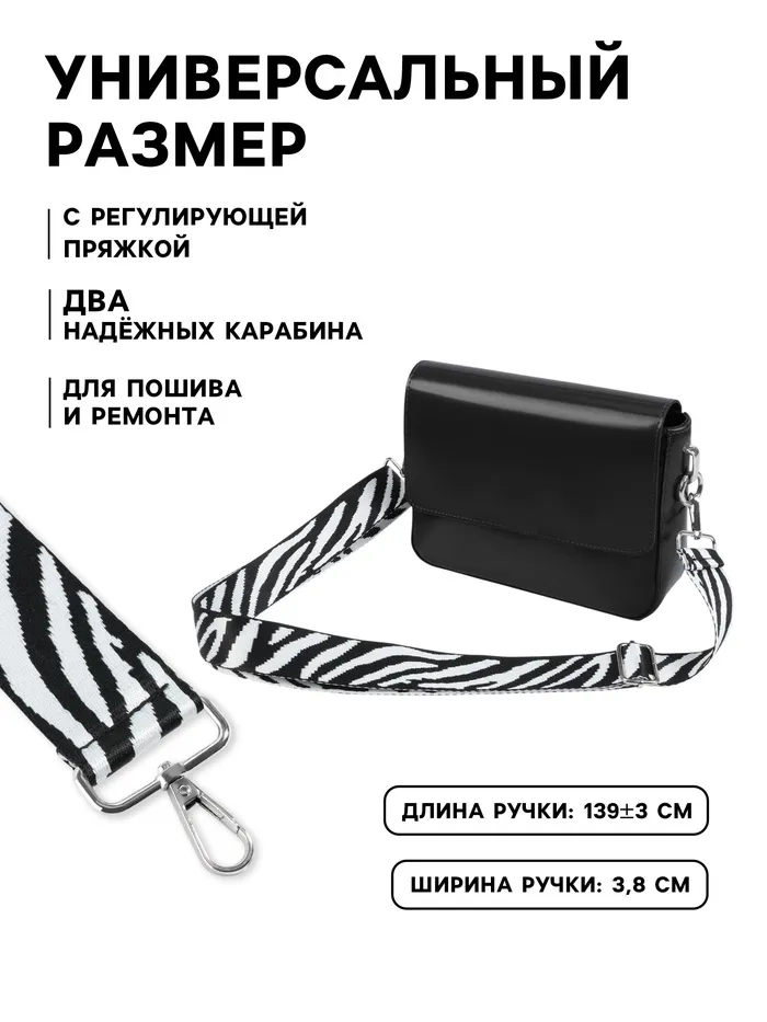 Ручка для сумки «Зебра», стропа, с карабинами, 139±3×3.8 см, чёрно-белая — Характеристики