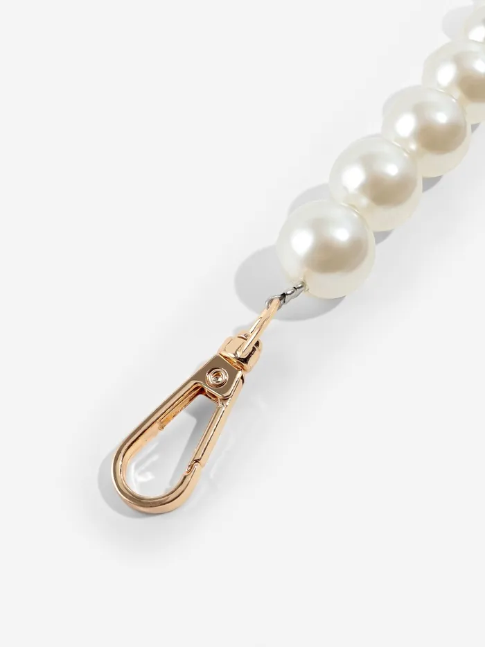 Элегантная жемчужная ручка для сумки с золотой фурнитурой — аксессуар, который превратит обычную сумку в стильный акцент. Бусины разного диаметра (12, 14, 16 мм) создают мягкий переливчатый эффект, а длина 39 см удобна для ношения на плече или в руке. Белый цвет в сочетании с золотом подходит как для повседневных, так и для торжественных образов.