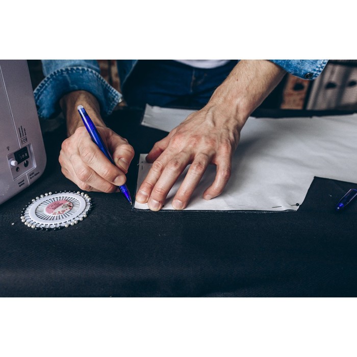 Ровные, тонкие, яркие линии — залог хорошей выкройки. Ручка для ткани обеспечит аккуратную прорисовку даже самых мелких деталей, которые будут чётко выделяться на фоне ткани. Краска легко смывается с изделия, не оставляя пятен и полос.Чернила можно удалить водой или с помощью горячего утюга.