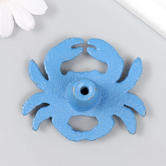 Ручка дверная чугун "Крабик" голубая с патиной 5,8х7 см