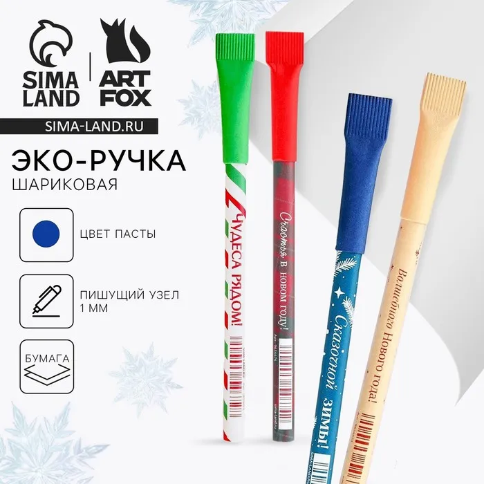 Ручка-эко шариковая, синяя паста, 1.0 мм «Новый год» МИКС — Характеристики