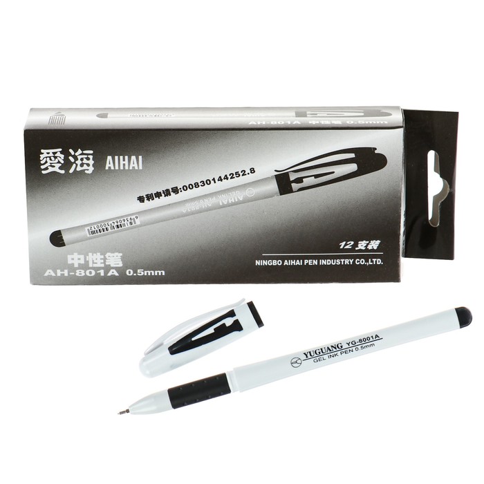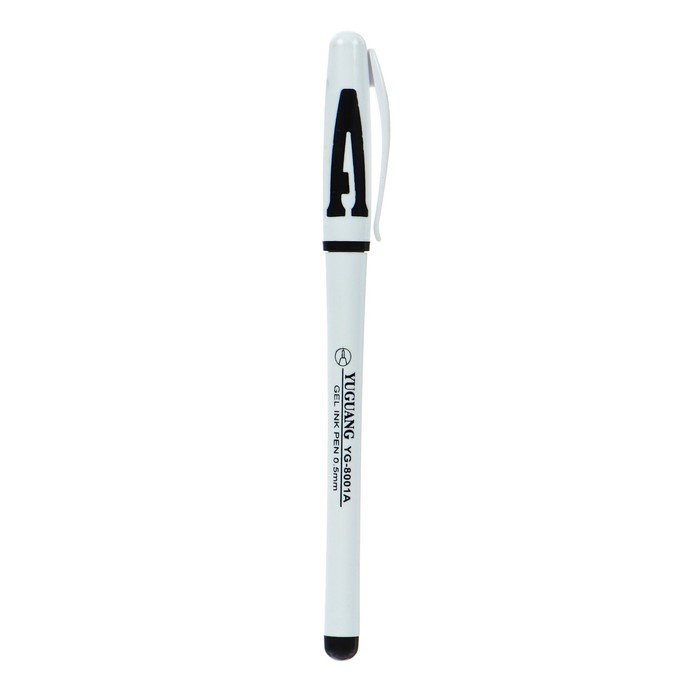 Ручка гелевая, 0.5 мм, чёрный, корпус белый, с резиновым держателем