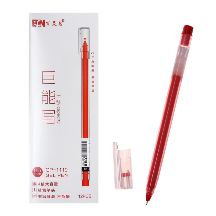 Ручка гелевая 0.5 мм красная, бесстержневая, корпус треугольный, игольчатый пишущий узел — Характеристики
