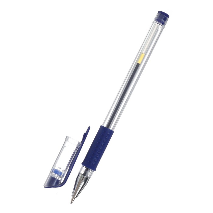 Ручка гелевая, 0.5 мм, цвет чернил синий, корпус прозрачный с резиновым держателем - отличный выбор для любителей мягкого и удобного письма.