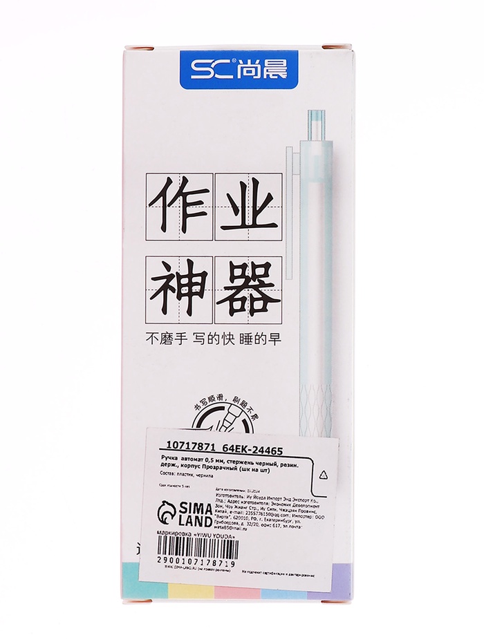 Ручка гелевая автомат 0,5 мм, стержень черный, резин. держ., корпус Прозрачный (шк на шт) — Характеристики