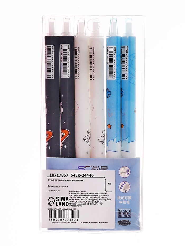 Ручка гелевая автомат СТИРАЕМЫЕ ЧЕРНИЛА, 0,5 мм, стержень синий, Космонавт МИКС — Характеристики