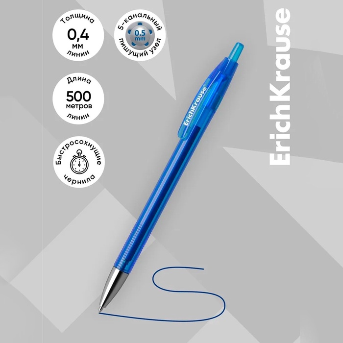 Ручка гелевая автоматическая Erich Krause R-301 Original Gel Matic, узел 0.5 мм, чернила синие, длина линии письма 500 метров — Характеристики